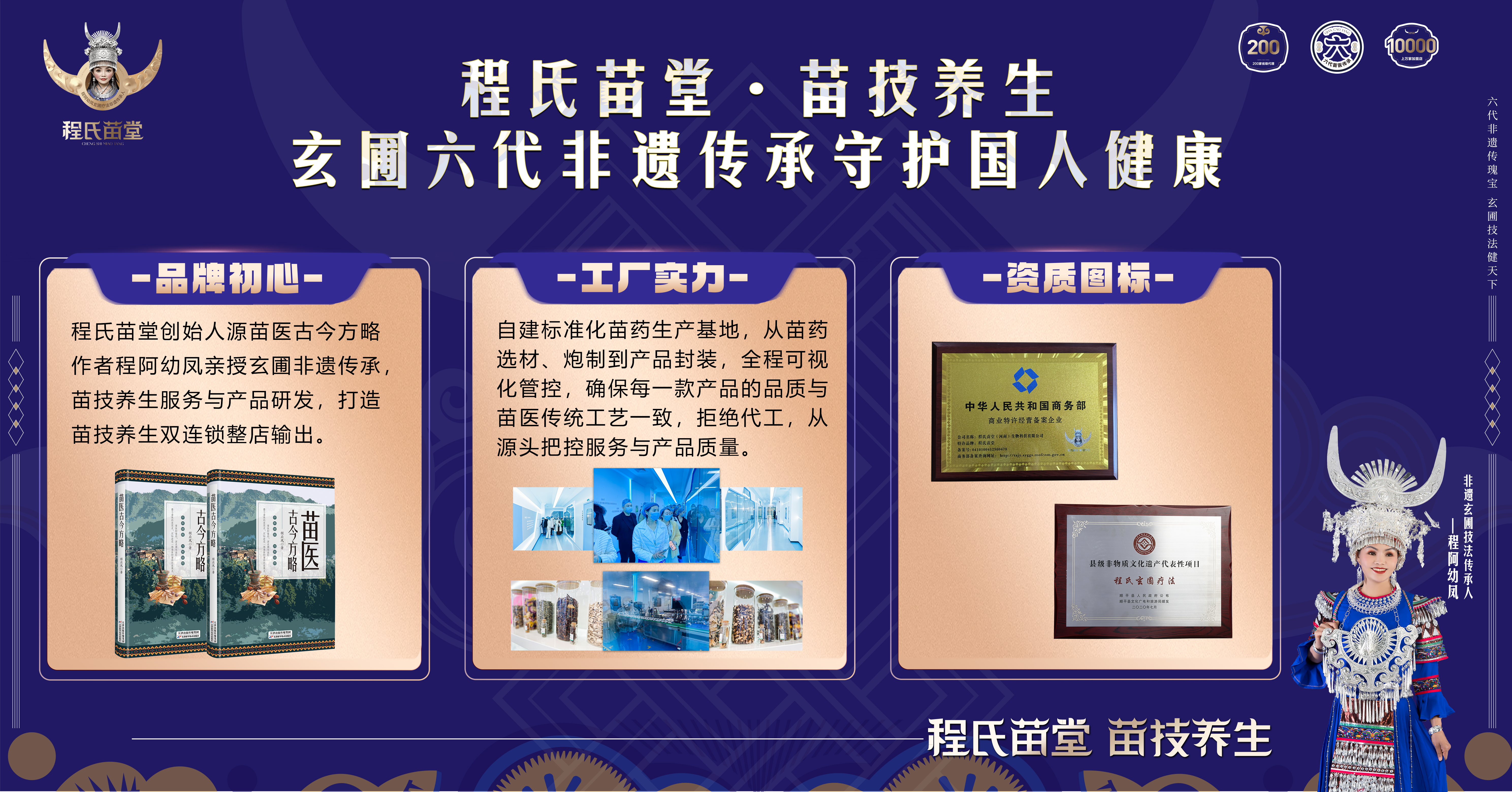 很多苗医品牌“原料靠外购”,品质参差不齐。程氏苗堂从贵州苗药种植基地(贵州省贵森林装植物科技有限公司)→提取加工(贵州高森医药科技有限公司)→全国门店,核心原料自主把控。比如佰草膏的100余种草本,每一批都能溯源到种植地,避免“今天用A厂原料,明天换B厂”的品质波动。