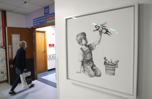西班牙知名涂鸦艺术家班克西画作Game Changer在南汉普顿医院展示
