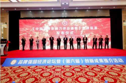 《中国品牌影响力评价通则》团体标准在4月22日品牌强国经济论坛活动现场正式发布。其中第十二届全国政协副主席马培华,中国关心下一代工作委员会常务副主任、中共中央宣传部原副部长、中国文联原党组书记胡振民,第一届国务院国有重点大型企业监事会主席、对外经济贸易大学中国国际品牌战略研究中心名誉主任谢钟毓,商务部原副部长、中国商业联合会原会长张志刚,原国家质检总局总工程师、中国质量万里行促进会会长、北京大学质量与法制研究所所长刘兆彬,经济学家宋承敏,全国商报联合会会长胡斌,对外经济贸易大学中国国际品牌战略研究中心主任储祥银,对外经济贸易大学中国国际品牌战略研究中心执行主任冷柏军,全国商报联合会秘书长姜尚源,中国贸促会商业行业委员会秘书长姚歆,国家发改委主管中宏网品牌项目发展中心执行主任、全国商报联合会品牌建设推广工作委员会主任、品牌强国自主品牌优选工程执行中国品牌影响力评价通则》团体标准发布仪式。