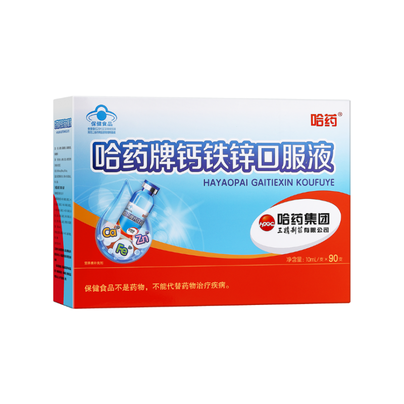 安心服用:请家长们放心,复溶后哈药钙铁锌口服液的营养及效用始终如一,吸收效果不会受到任何影响。