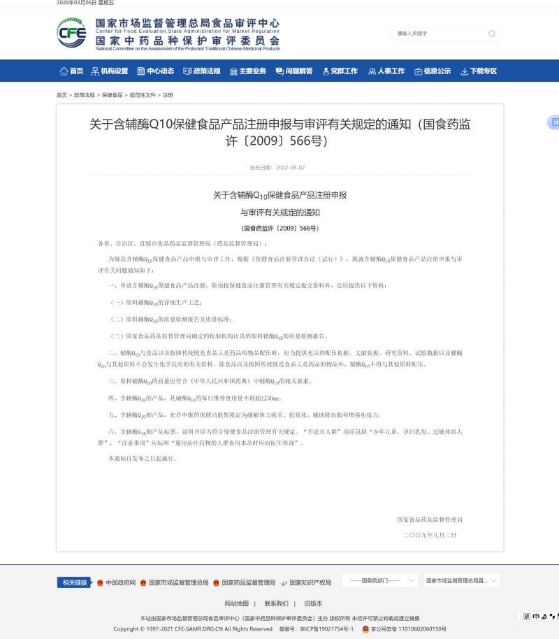 国家保健食品辅酶Q10每日推荐量及含量上限规定